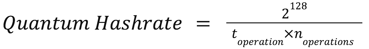 To calculate a theoretical quantum hashrate, we need to consider how quickly a quantum computer could perform these 2128 operations. Presently, even the most advanced quantum computers operate in the timeframe of microseconds (10−6 seconds) per quantum gate operation (considering error correction and other practical aspects).
